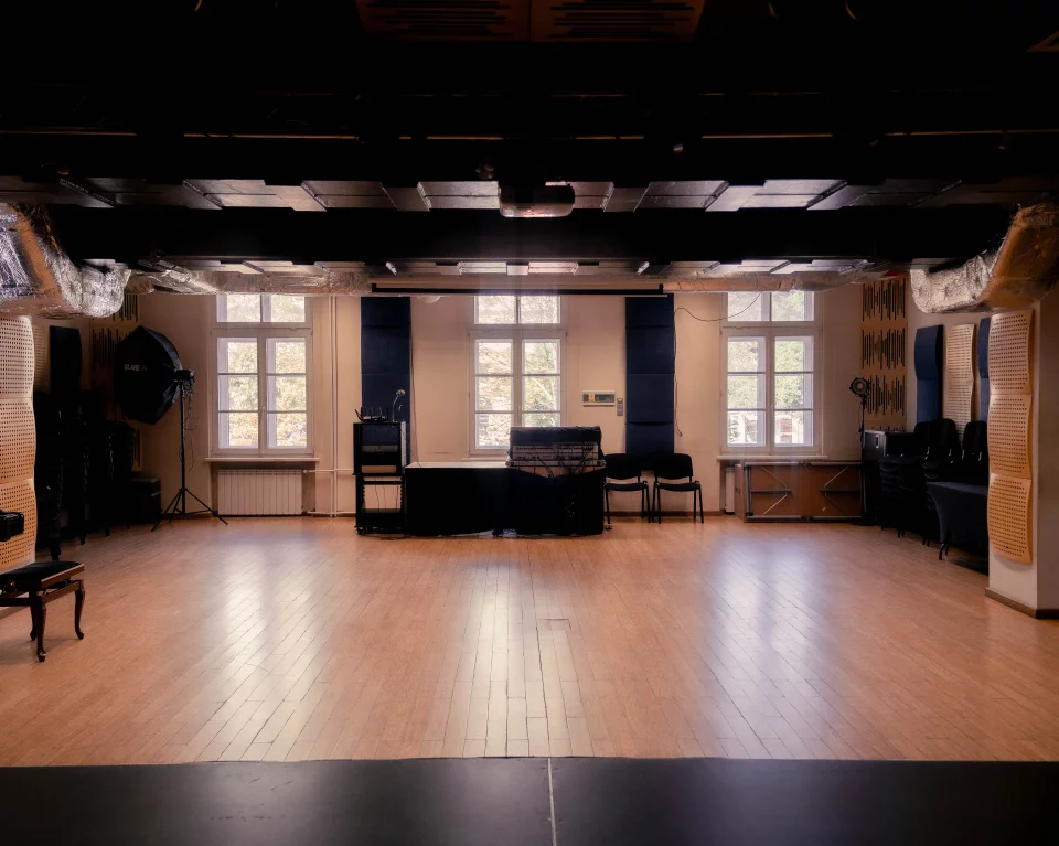 Sala jest funkcjonalna, komfortowa i doskonale sprawdzi się w różnych formach działalności artystycznej, edukacyjnej czy biznesowej.